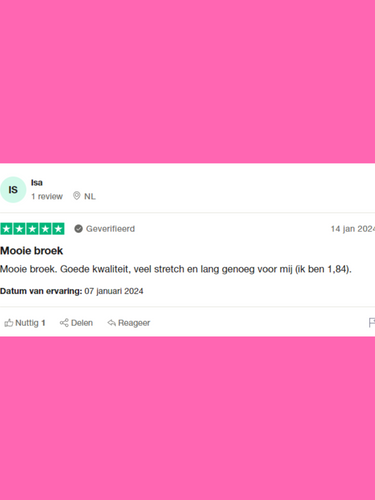 ''Beste broek ever! Nog nooit zo'n leuk model gehad met hoge taille, stretch en perfecte lengte voor mijn 1.80m. Love it''